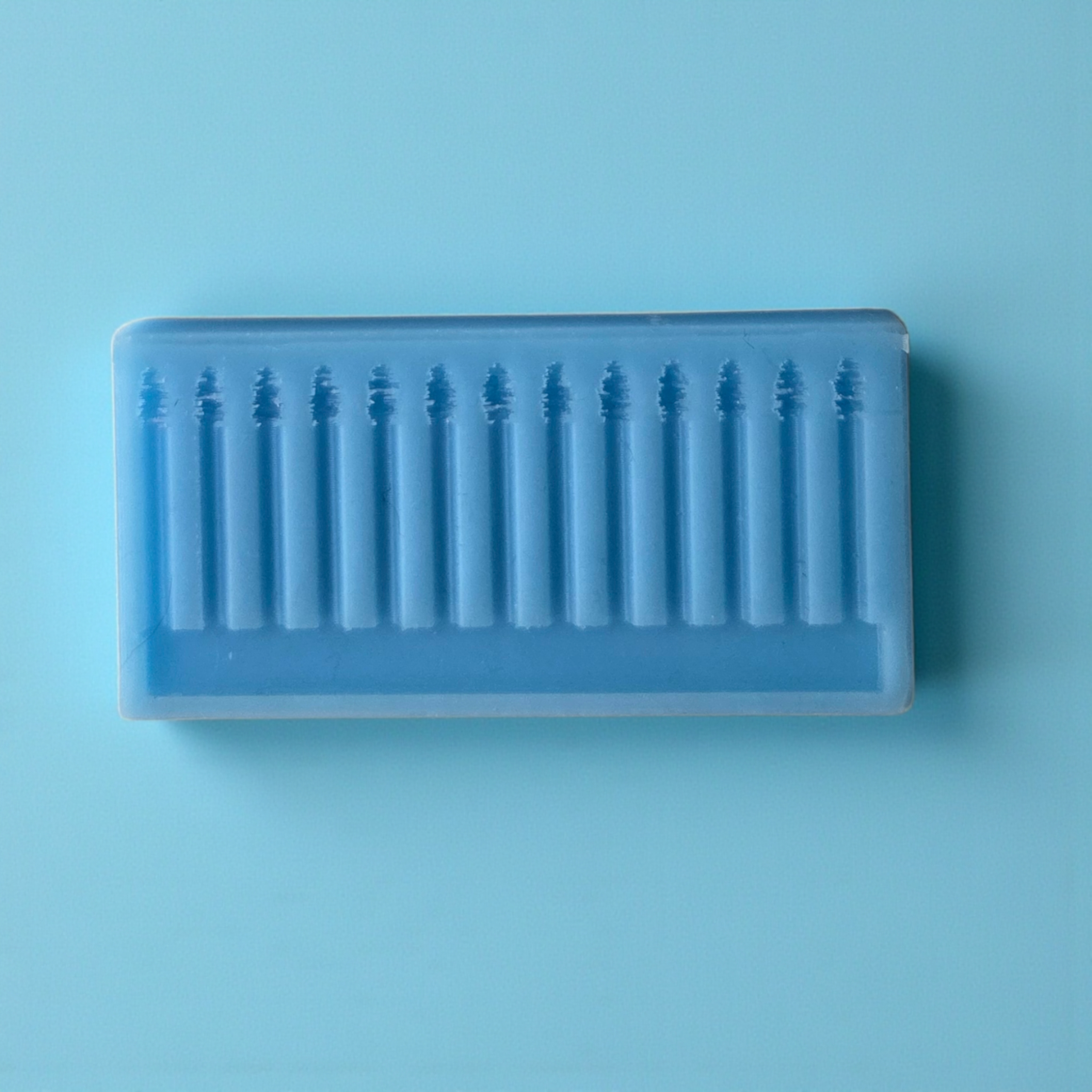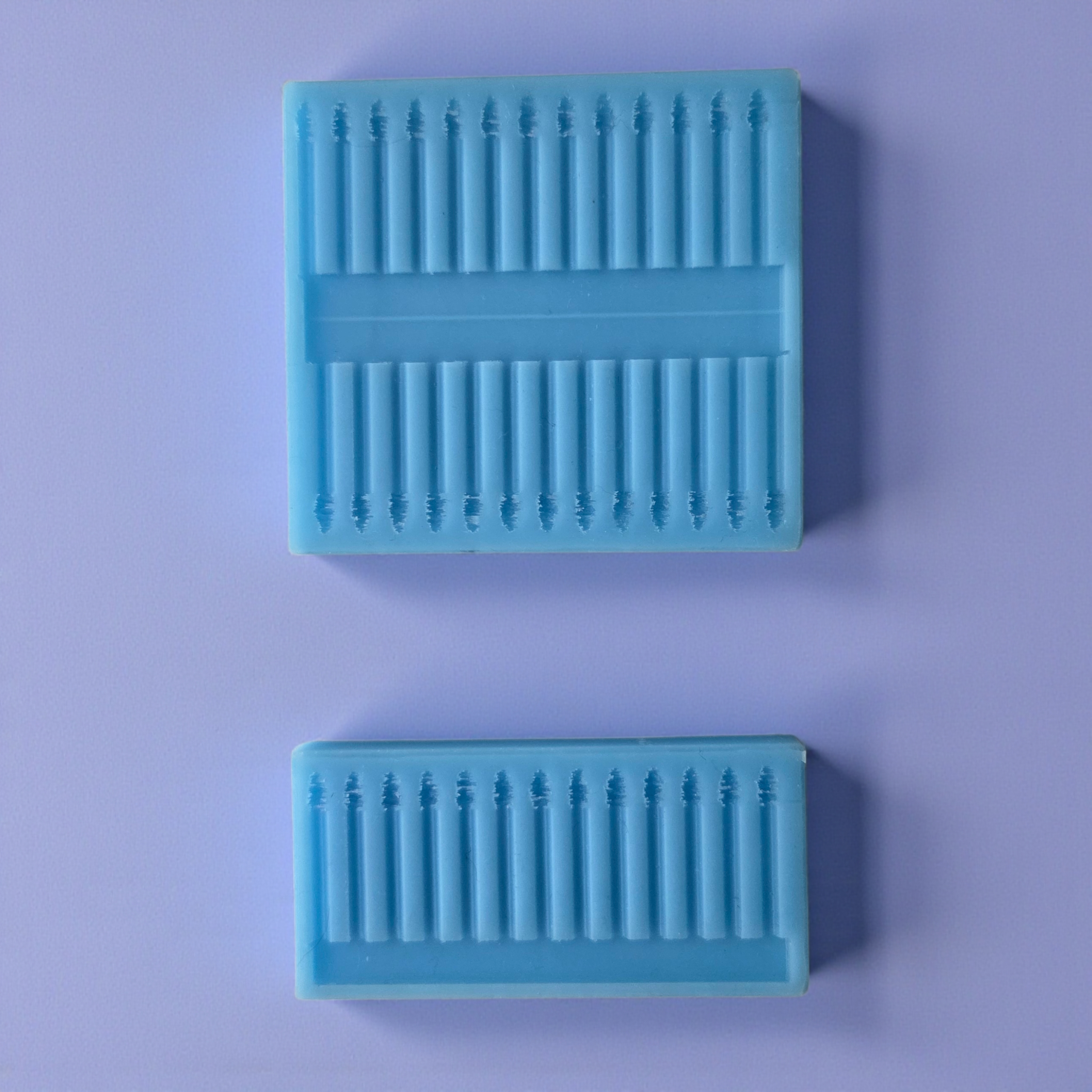 Formy do pręcików są w całości silikonowe. Po wlaniu wosku do formy, należy usunąć nadmiar (np. przy pomocy starej karty kredytowej) lub użyć pipety i ostrożnie wypełnić formę woskiem, starając się nie zalać brzegów.
